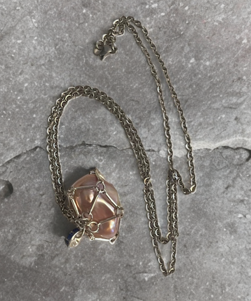 ✨ Baroque Pearl Cage Necklace with Sapphire-Blue Accents ✨